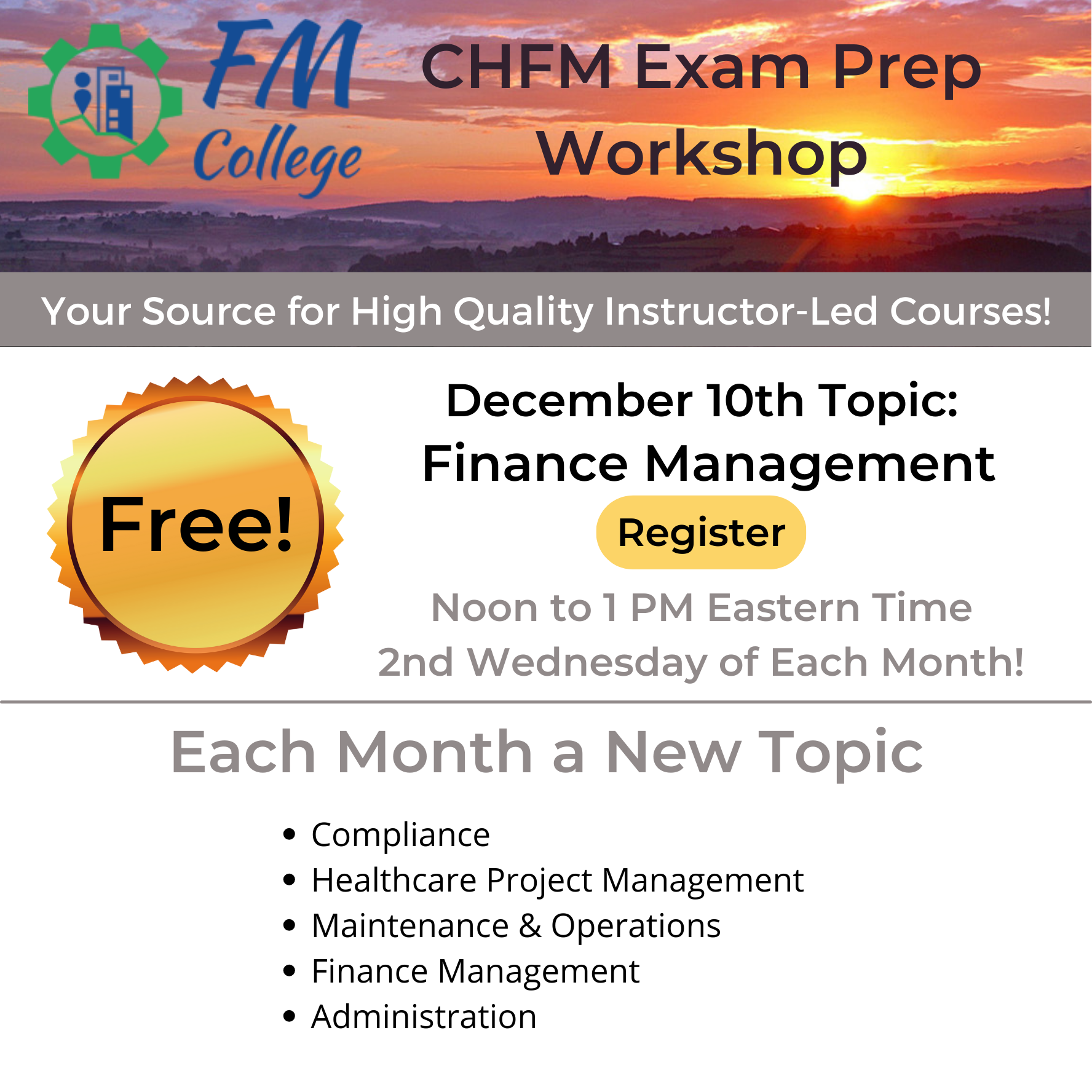 Join us on 10 December at 1 PM Eastern Daylight Time (EDT) for a Free Webinar to help you prepare for the AHA CHFM Exam!