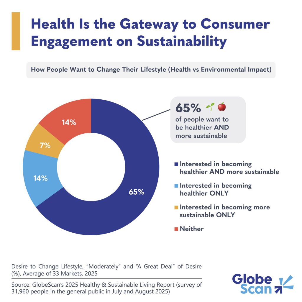 According to Trellis data partner GlobeScan’s recent research on healthy and sustainable living, health is now the strongest driver of sustainable behavior change. The desire to be healthier isn’t just compatible with sustainability; it’s the main reason people are open to making more environmentally-friendly choices. When sustainability is positioned as a way to achieve better health, it becomes relevant, actionable and personally meaningful.